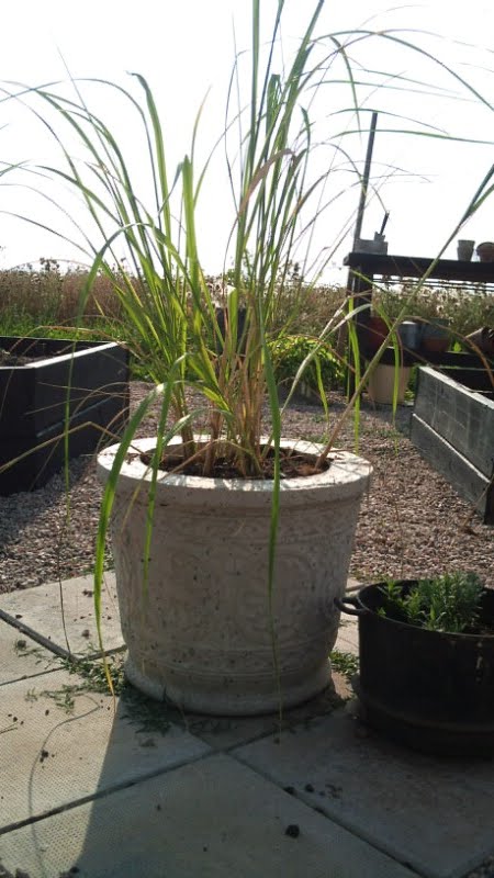 Den här krukan gjöt jag i somras. Använde en gammal i plast att ha som grund, fyllde den en bit upp med betong sedan la jag i en mindre hink med stenar i. Sedan var det bara att fylla på med betong emellan dessa krukor och slå lite för att få bort luft bubblor. Efter 3 dagar skar jag bort plastkrukan och fram kom denna. Gräset har inte helt hunnit tagit sig är ganska ny planterat men nästa år blir det nog fint. Kramtorsdag 5 augusti 2010